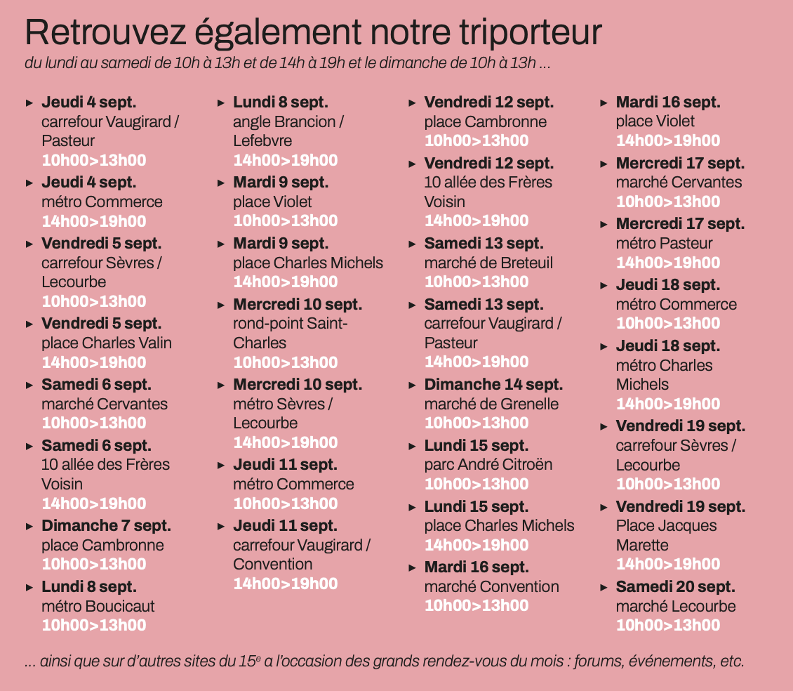 Les citoyens seront régulièrement informés par la Mairie centrale (sur le site paris.fr et le magazine « À Paris ») et par la Mairie du 15e arrondissement (sur le site mairie15.paris.fr, la newsletter Info Quinze et le magazine Paris Quinze Mag).