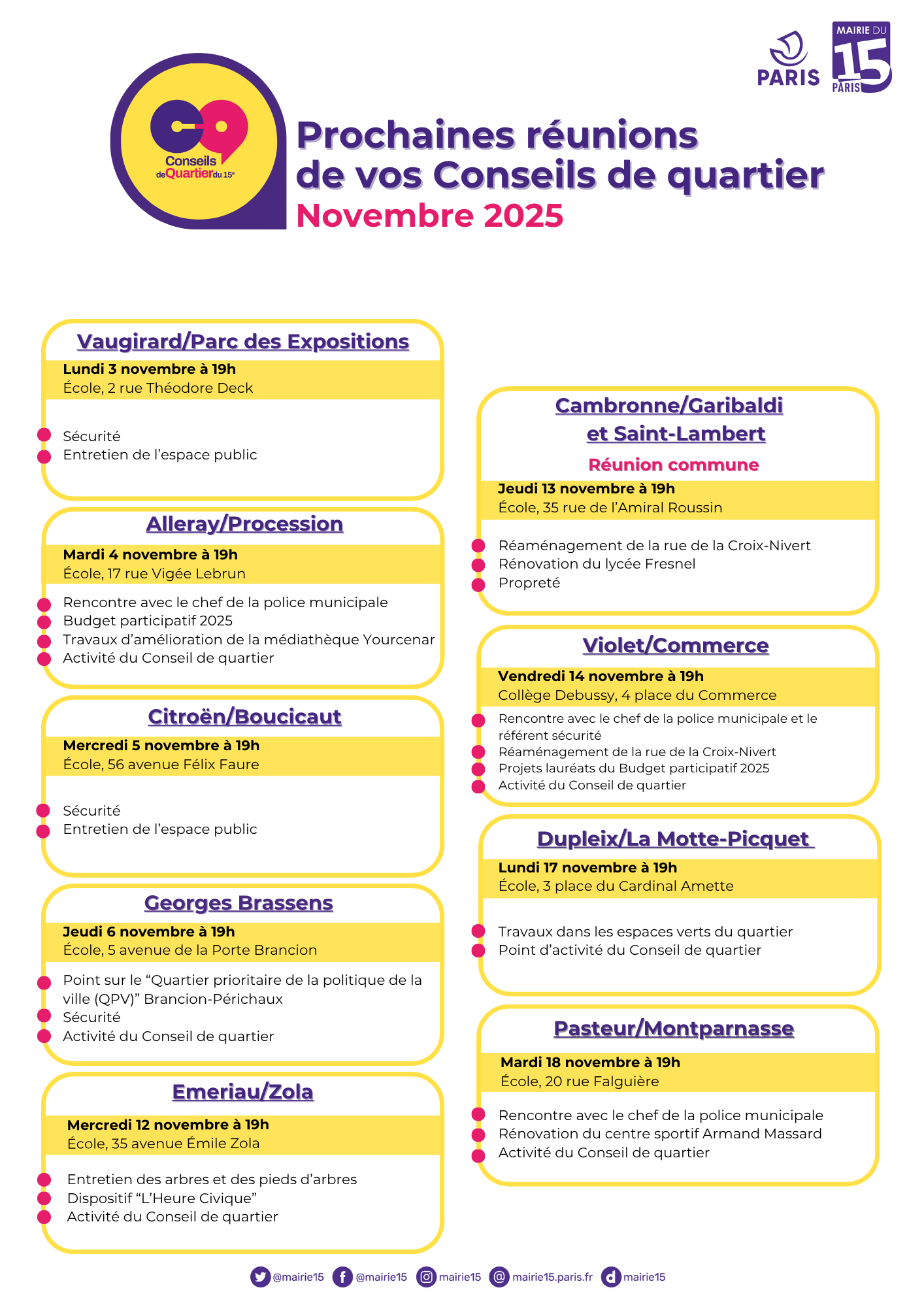 Prochaines réunions de vos Conseils de quartier - Novembre 2025