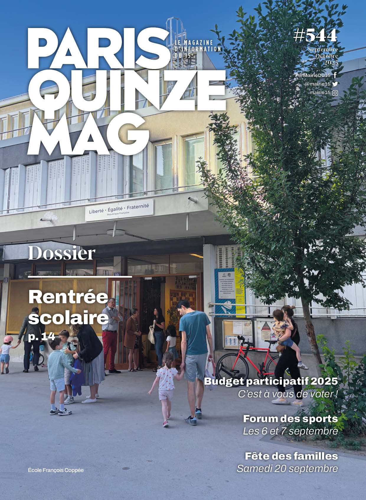 Retrouvez le numéro 544 de Paris Quinze Mag pour les mois de septembre et octobre 2025, dédié à la rentrée scolaire et à l'actualité de votre arrondissement