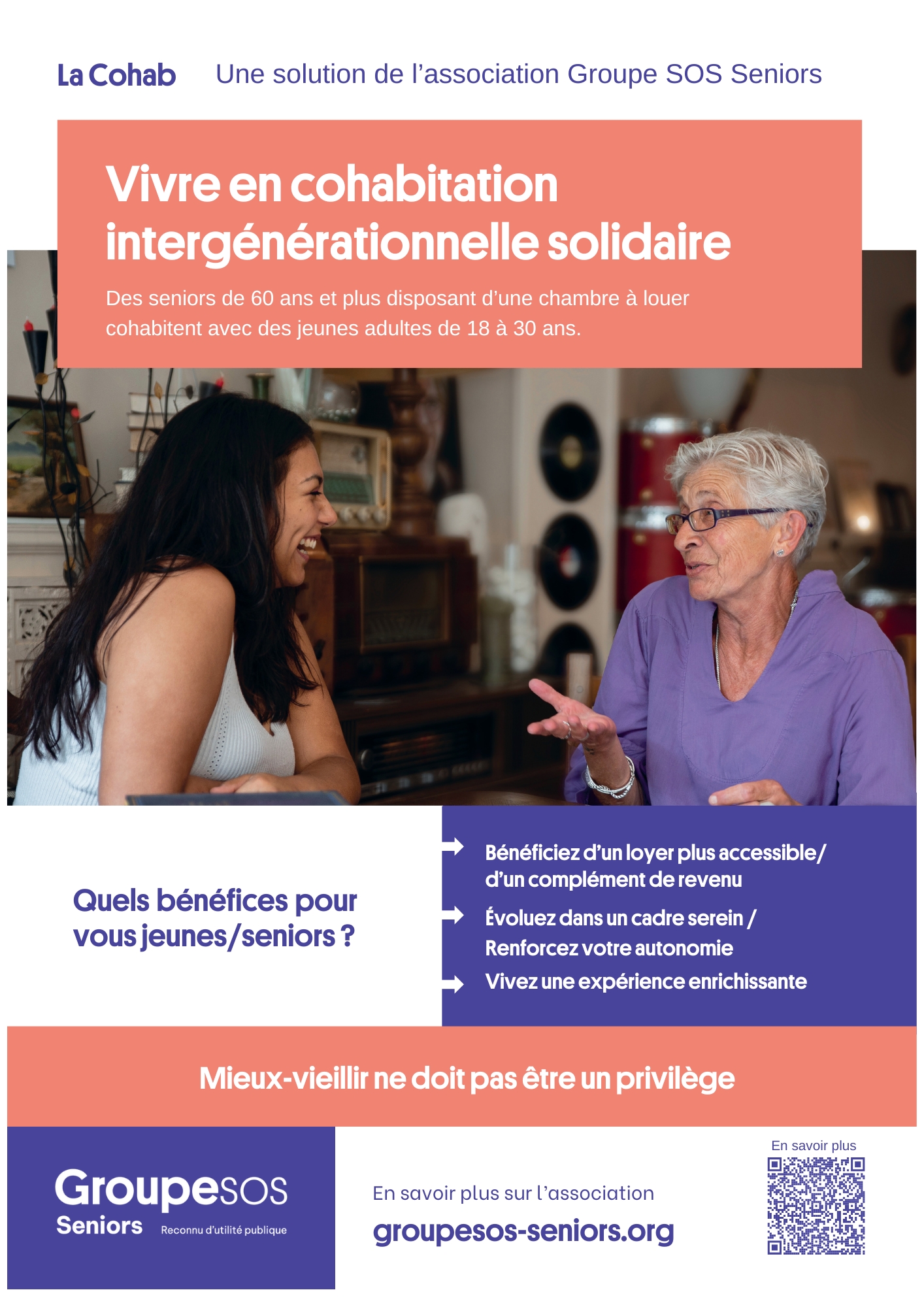 Solution de logement intergénérationnel et solidaire, La Cohab est portée par l'association Groupe SOS Seniors.